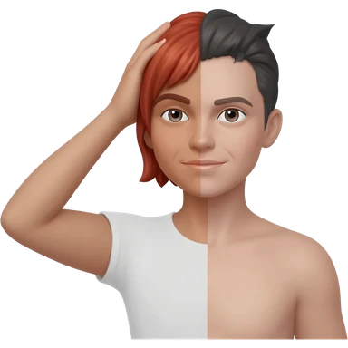 Beynini elinde tutmuş yarı erkek yarı kız emoji