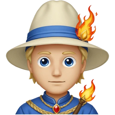 Sabo l'empereur des flammes avec un chapeau blanc et une chemise bleu de one piece emoji