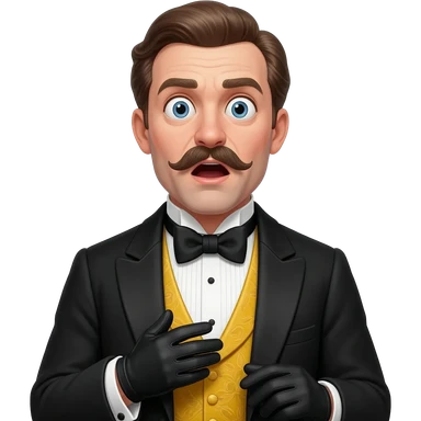 Bright red and sweaty snob man from 1900, eyes wide open, tounge out emoji