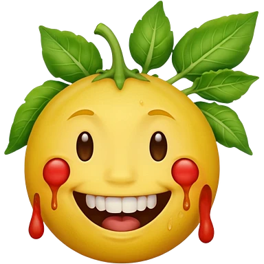 yellow face emoji laughing with vegetable leaf stuck on teeth stain emoji
