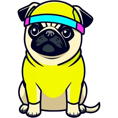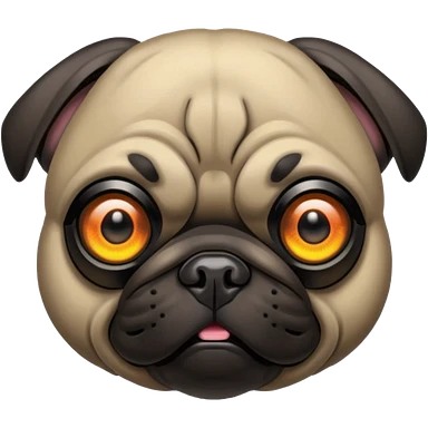 Pug wearing a black hoodie and using a laptop and wearing sunglasses emoji