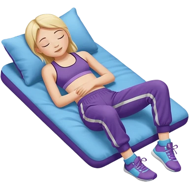 ten-year-old girl in a sports bra, trackpants, socks and high tops sleeping happily, prepubescent and flat-chested emoji