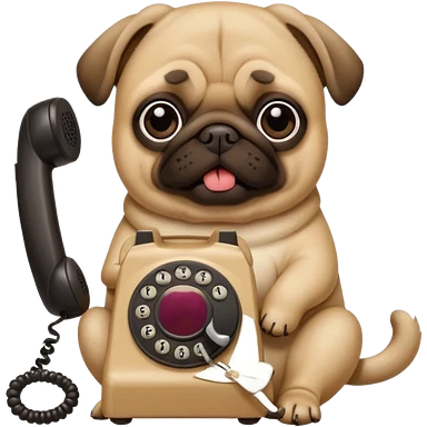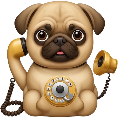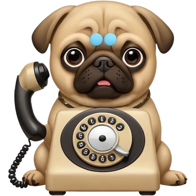 a pug holding a classical telephone to its ear emoji