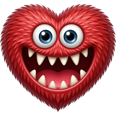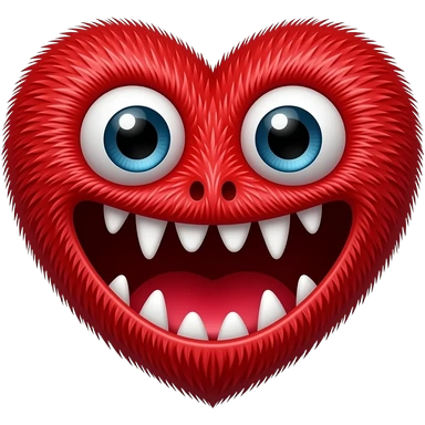 Crie o emoji de um monstro com a cara no formato de coração vermelho com ema boca grosa e vermelha cheia de dentes aviados ela tem pelo e olhos grandes emoji