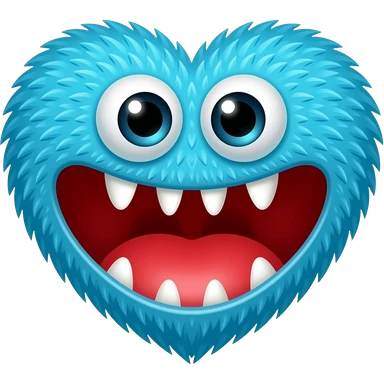 Crie o emoji de um monstro com a cara no formato de coração azul escuro com ema boca grosa e vermelha cheia de dentes aviados ela tem pelo e olhos grandes com um olhar ameaçador com cara de “ eu vou te matar “ emoji