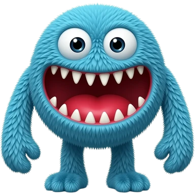 Crie o emoji de um monstro com a cara no formato de coração azul com ema boca grosa e vermelha cheia de dentes aviados ela tem pelo e olhos grandes emoji