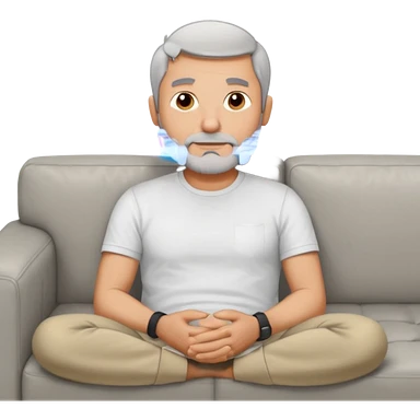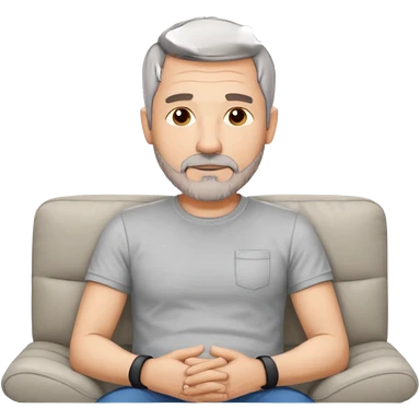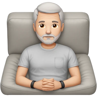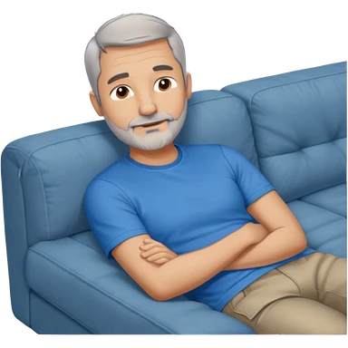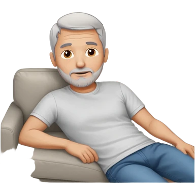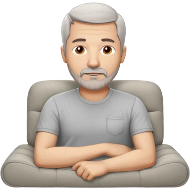a 50 yo man short grey hair stubble beard laying on a ottoman of a light grey cord couch emoji