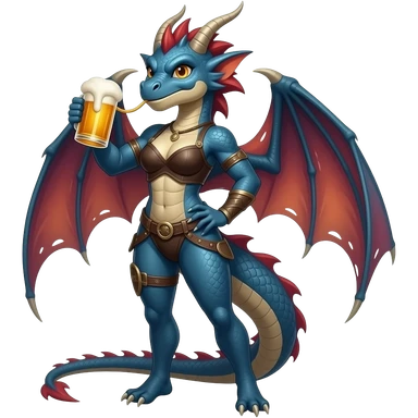 pixar lokking female dragonkin drinking beer, full body visible emoji