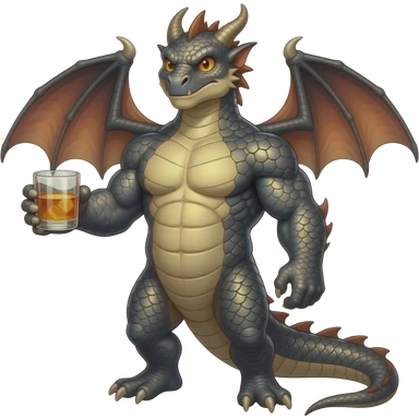 pixar lokking male dragonkin drinking whisky, full body visible emoji