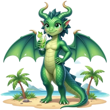 pixar lokking female dragonkin drinking mohito, full body visible emoji