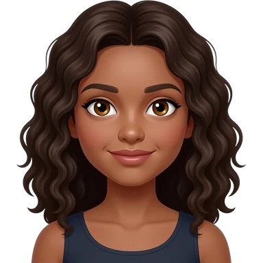 dark tan skin , female, wavier hair, 16 age, hazel eyes, longer face emoji