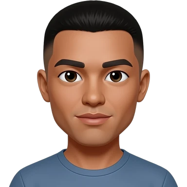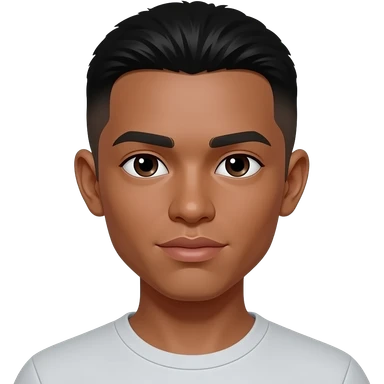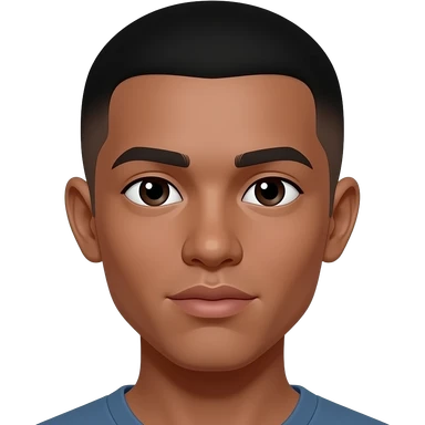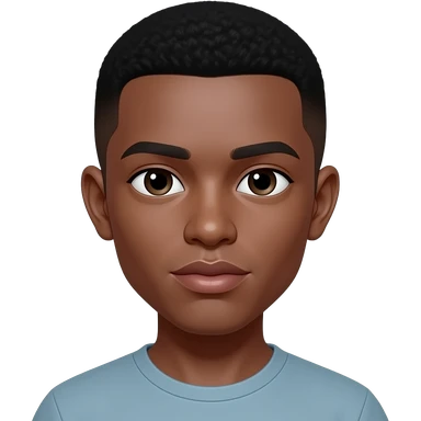 very dark skin, more asain eyes, male, staight fade haircut, thick lips, flat botton nose, teenager emoji