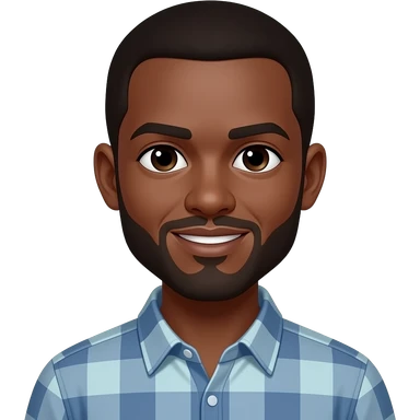 very dark skin, asain eyes, male, staightish fade haircut, thick lips, flat botton nose emoji