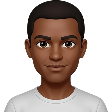 very dark skin, asain eyes, male, staightish fade haircut, thick lips, flat botton nose, teenager emoji