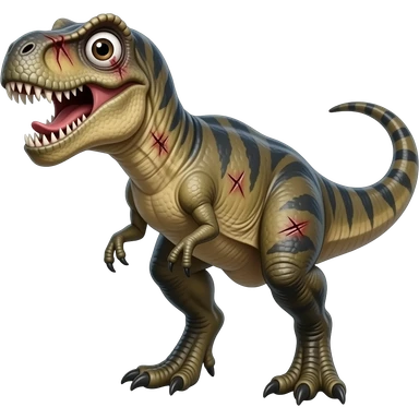 un dinosaurio muy feroz con cicatrices en un ojo. emoji