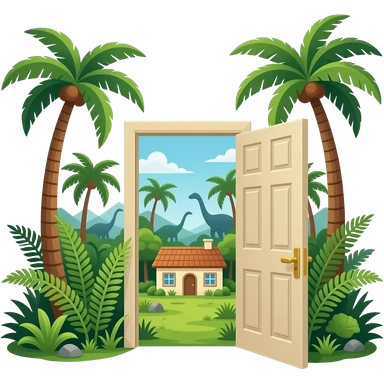 one door to another world. (The door is in the Jurassic period.)Through the portal, you can see a house.sin la planta emoji