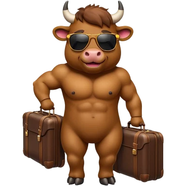 generate an emoji of a bull that is travelling. maybe wearing sunglasses or drinking a drink or carrying a suitcase emoji