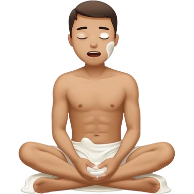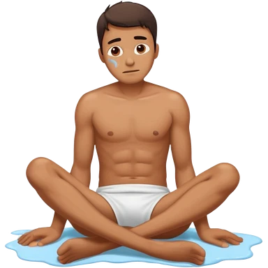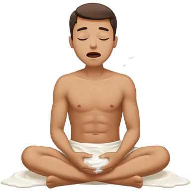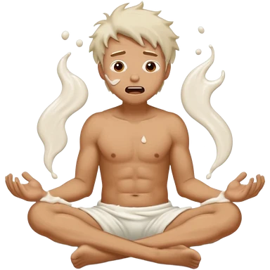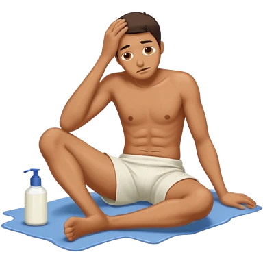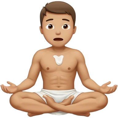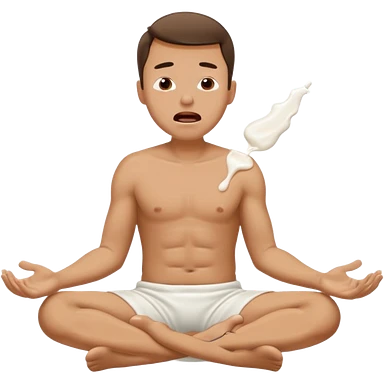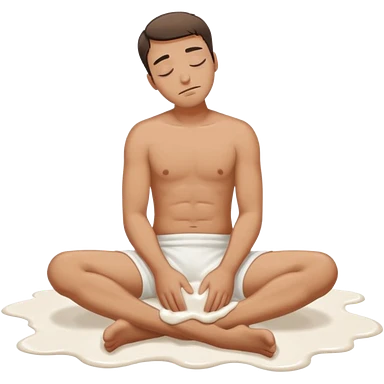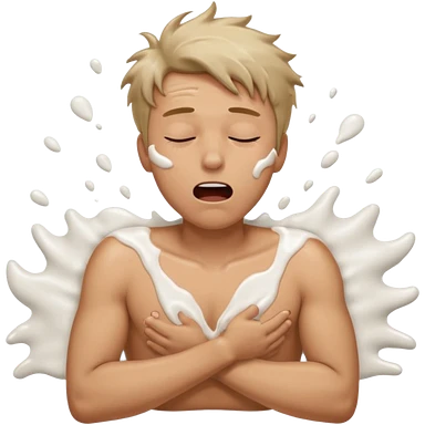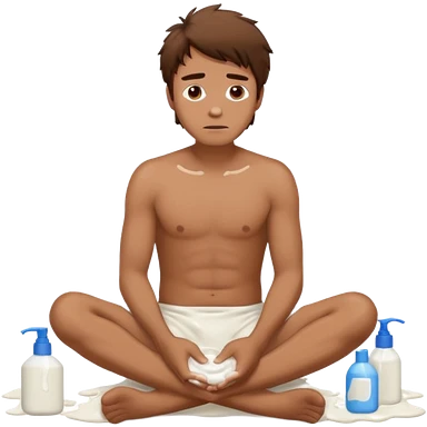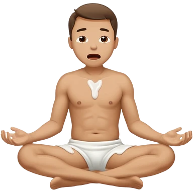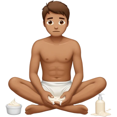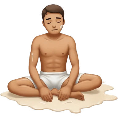 Man sitting on the floor exhausted mouth open eyes closed chest covered in white lotion emoji