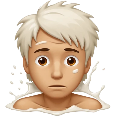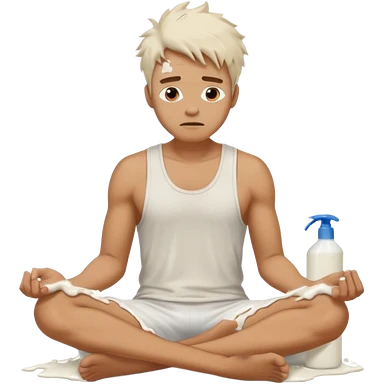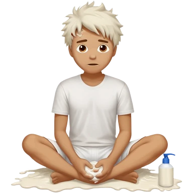 Man sitting on the floor exhausted mouth open eyes closed covered in white lotion emoji