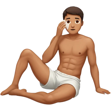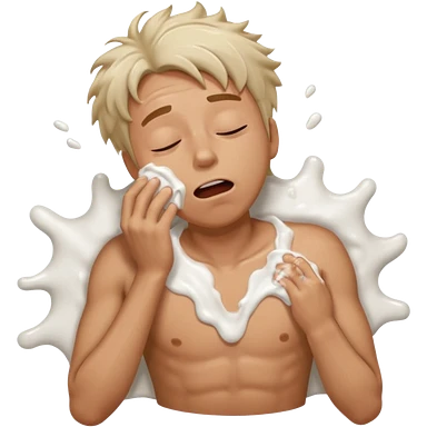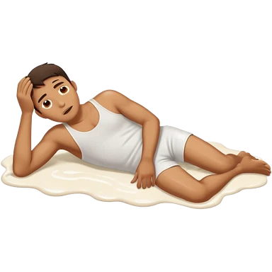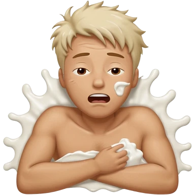 Man laying on the floor exhausted mouth open eyes closed chest covered in white lotion emoji