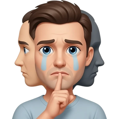iki yüzlü maske ve işaret parmağı ağzında üzgün emoji