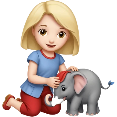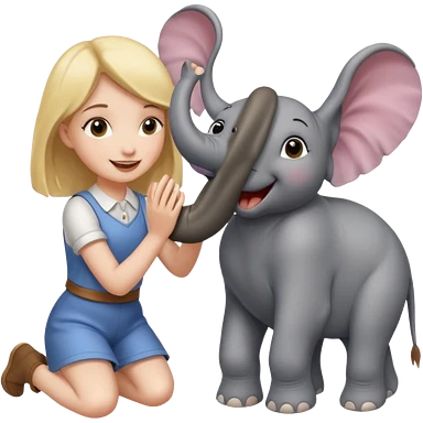 girl playing with elephant emoji