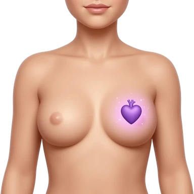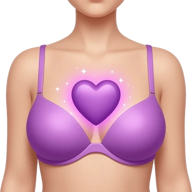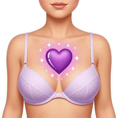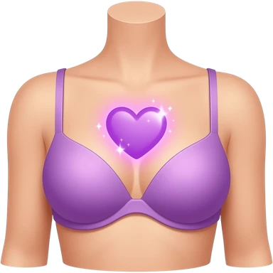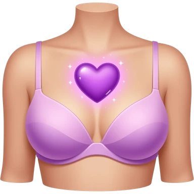 iOS-style emoji of close up of a feminine human torso ( who wear a bra )with an little anatomical purple heart in the chest, soft pink-purple aura with sparkles, smooth gradients, glossy finish, minimal details, neutral background. emoji