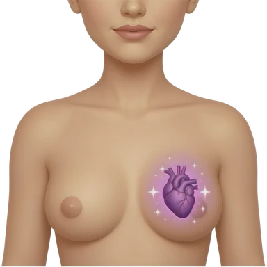 iOS-style emoji of close up of a feminine human torso with an little anatomical purple heart in the chest, soft pink-purple aura with sparkles, smooth gradients, glossy finish, minimal details, neutral background. emoji