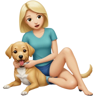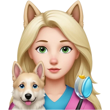 White Shepard short fur Brown eyes is huggin from a Long-haired blonde lady emoji