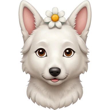 Cute Brown eyes White Shepard with short fur with 1 flowerband on the head emoji