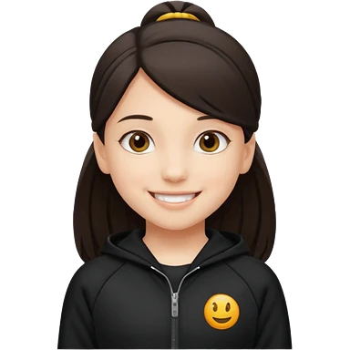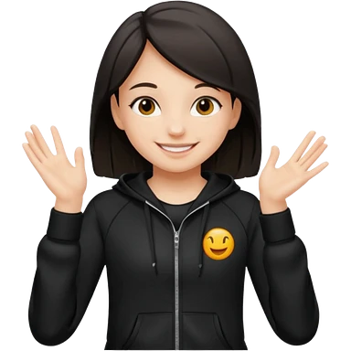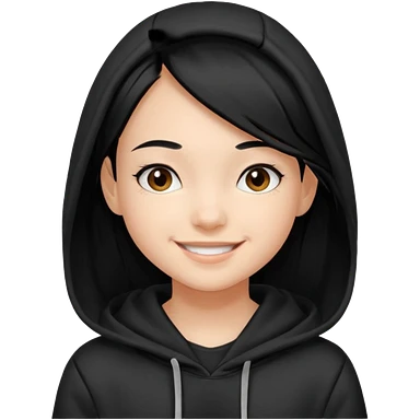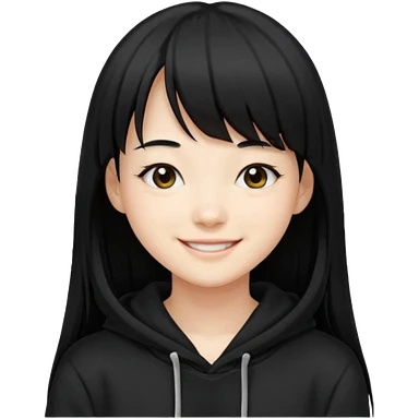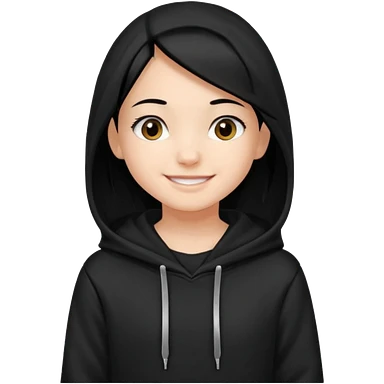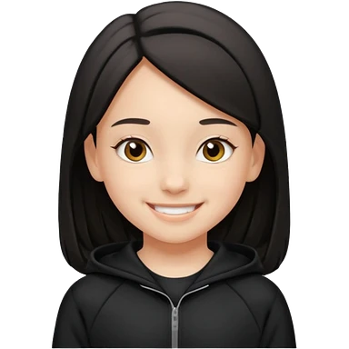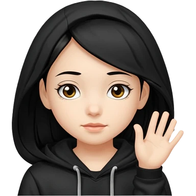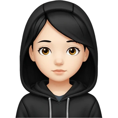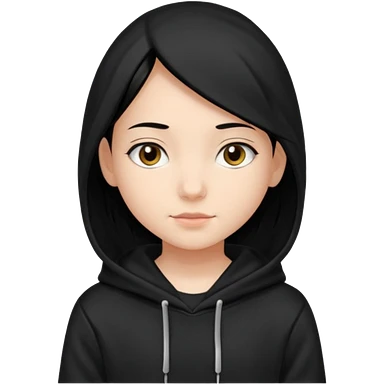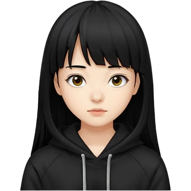후드티 입은 초딩여자 아이.후드 안 씀. 검은색 후드티와 검은 머리. emoji