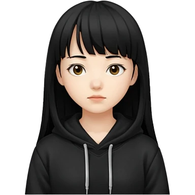 후드티 입은 초딩여자 아이. 검은색 후드티와 검은 머리. emoji