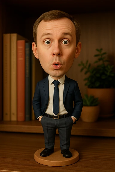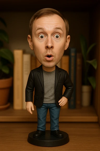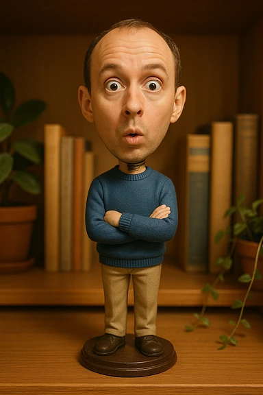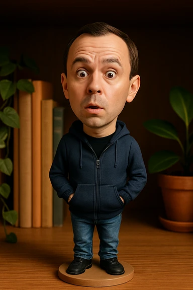 сделай так, чтобы он немного удивленно посмотрел на нас, не меняя его одежду и позу meme | AI Emoji Generator