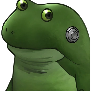 A robot designed in the style of a green Bufo frog meme, with a humorous and exaggerated expression. emoji