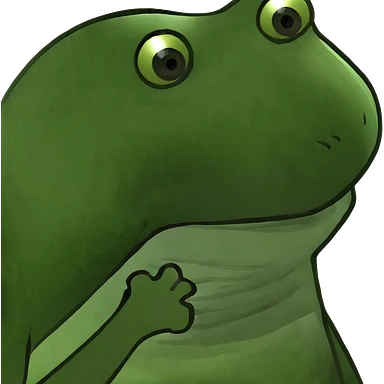funny frog head emoji holding a sign on top that says 'QA', the sign and letters are very obvious emoji