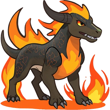 Copper-Bronze Molten-Lava Glow-Cracked Fiery-Runed Draconic Houndoom-Garchomp-hybrid-creature (full body) emoji