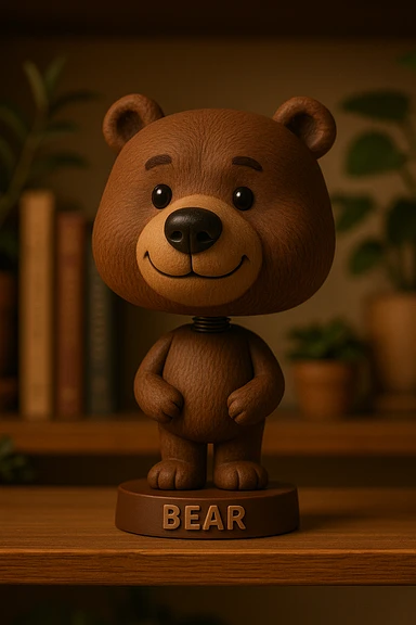 Transform this character into a plush teddy bear inspired by the Bobbie Goods style, keeping the colorful cap, curly hair, friendly smile, and cute bear body. Add plush texture and cozy details to enhance the cuddly appearance. emoji