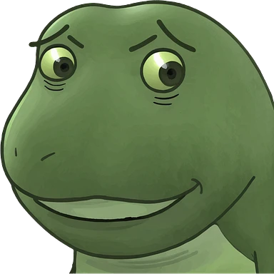 Fix the mouth to match the classic Bufo meme style: wide, slightly downturned, and expressive. Keep everything else the same, no background. emoji