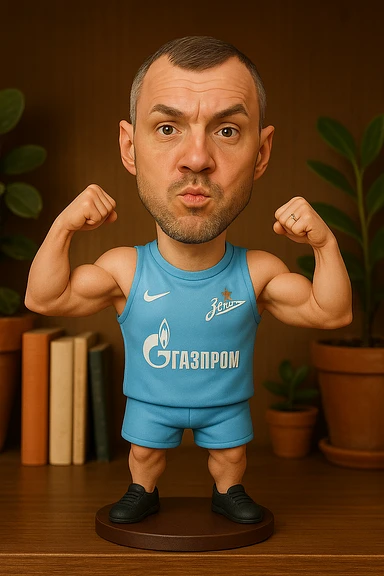 Create a bobblehead-style cartoon of the person in the reference image with a large head, small body, and a playful, friendly expression, rendered in bobblehead style. emoji
