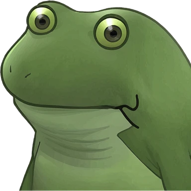 A frog sitting at a computer making a nervous face looking to the side emoji