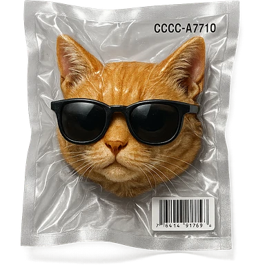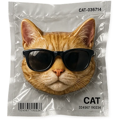cute cat face with glossy reflections in vacuum-sealed style emoji