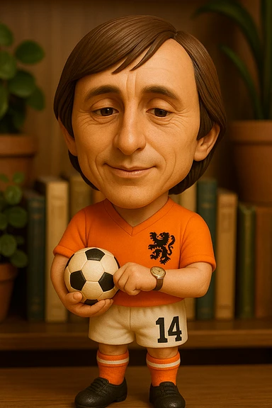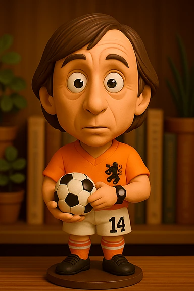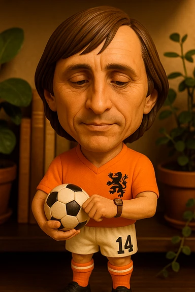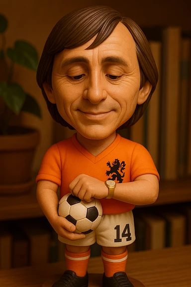 Молодой Йохан кройф в форме сборной нидерландов образца 1974 года стоит и внимательно смотрит на свои часы на одной руке, между второй рукой и торсом он держит футбольный мяч emoji