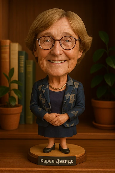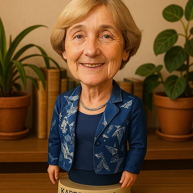 Create a bobblehead style portrait of the girl from the provided image, featuring a large head, cute features, and a soft pastel background. The style should be a digital illustration matching the bobblehead style with a charming and playful look. emoji