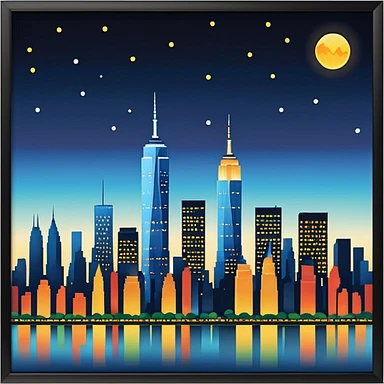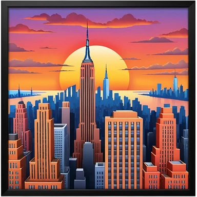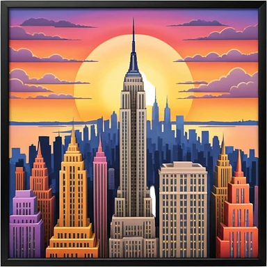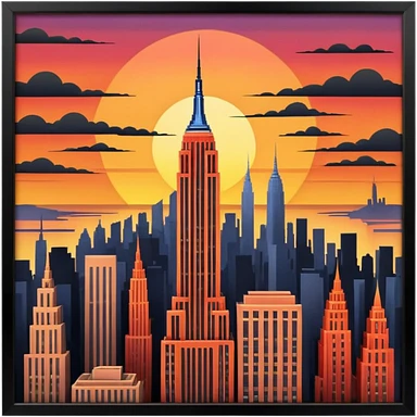New York Empire State with buildings and a sunset emoji