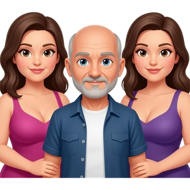 Handsome, bald, man with goatee, age 57, with 2 very full figured women with larger breasts emoji