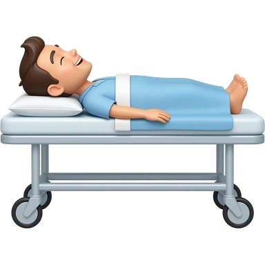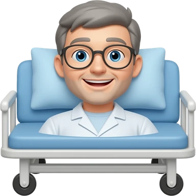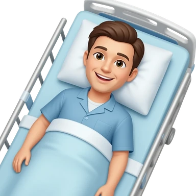 Paciente tumbado en camilla con cara de felicidad visto desde arriba emoji