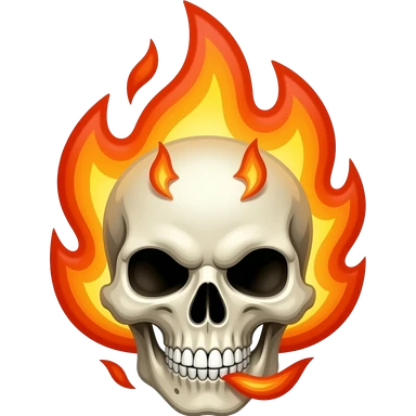 Rebelious anarchy savage cartoon skull on fire emoji