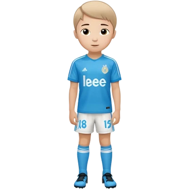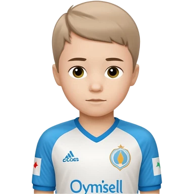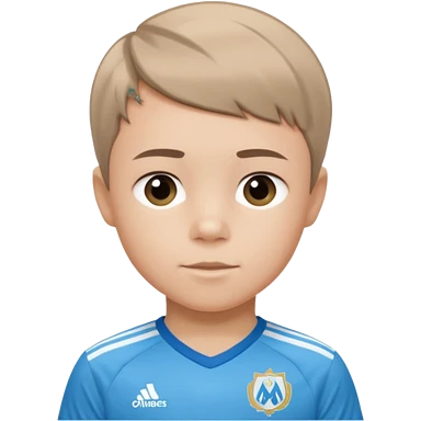 Un enfant qui a le coupe sur le coter et qui porte un maillot de marseille emoji