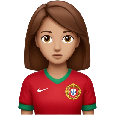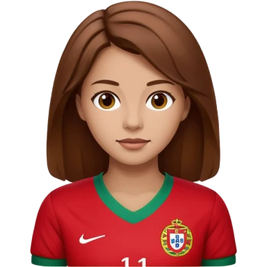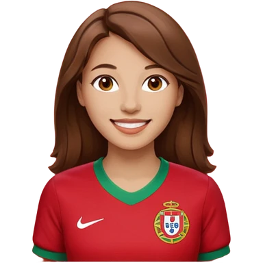 Une femme brune cheveux un peu long et qui a un maillot du portugal emoji