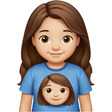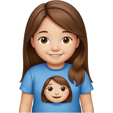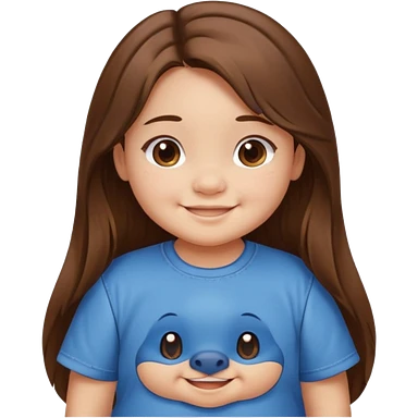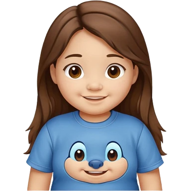 Une petite fille qui a des grosse joux qui est brune qui a les cheveux long et qui a un tee shirt stitch emoji